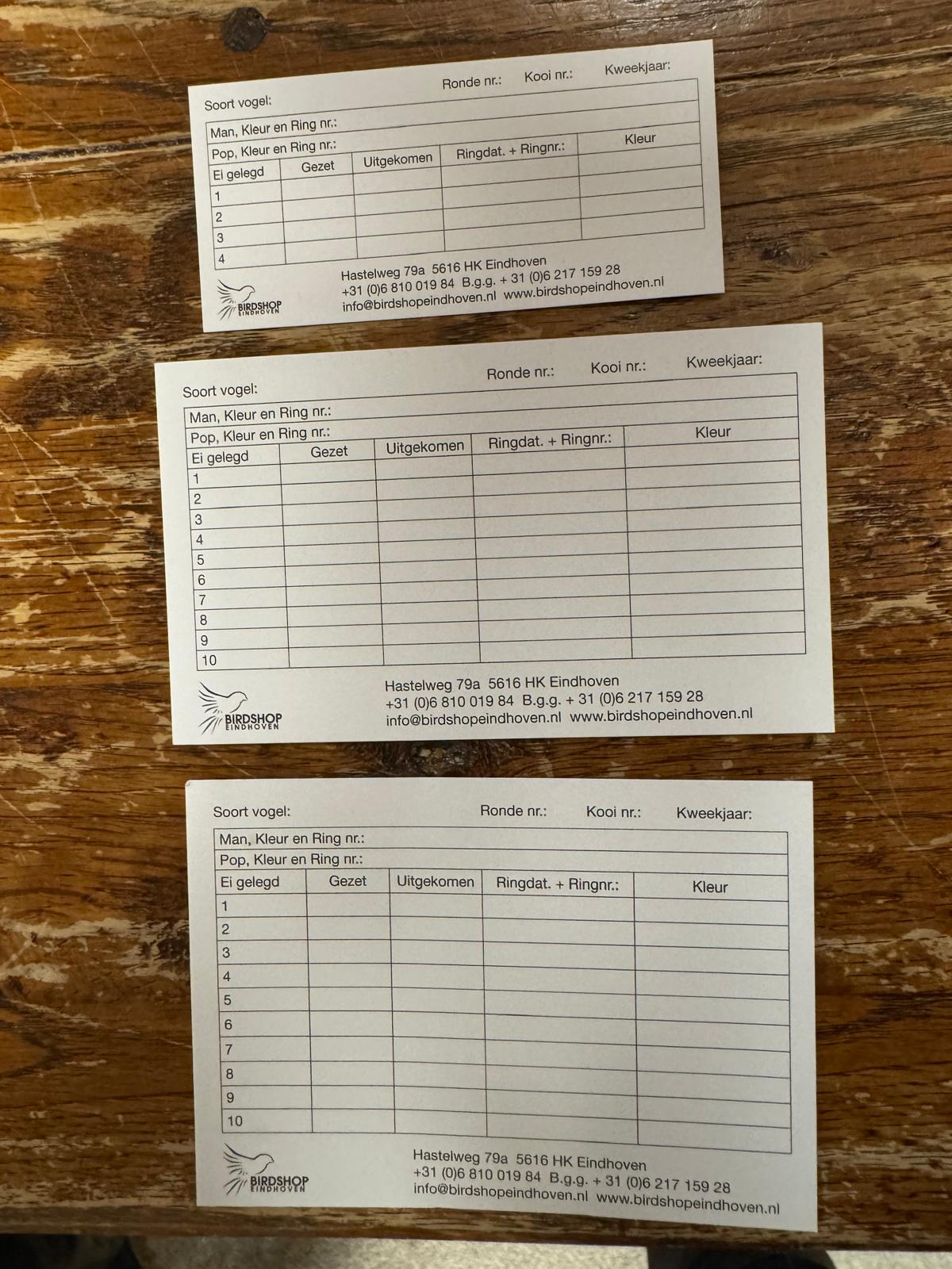 Kweekkaarten Birdshop Eindhoven 50 stuks
