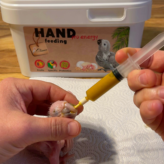 Handmatige opfok - Pro Energy is een wetenschappelijk ontwikkelde en nutritioneel uitgebalanceerde formule voor de handmatige opfok van Afrikaanse grijze papegaaien, blauwgele ara's, edelpapegaaien, witbuikpapegaaien, enz. Onze unieke formule is ontworpen om jonge vogels te voeden tijdens de meest kritieke stadia van hun leven, van het uitkomen via de ontwikkeling van de veren tot het spenen. Ons met de hand gekweekte voer bevat probiotica ter bevordering van een gezonde populatie van darm- en gewasmicro-organismen. Het toegevoegde fruit bevat veel natuurlijke vitamines. Papaja wordt gezien als een superfood dat het immuunsysteem en de kropfunctie van uw papegaaien versterkt.