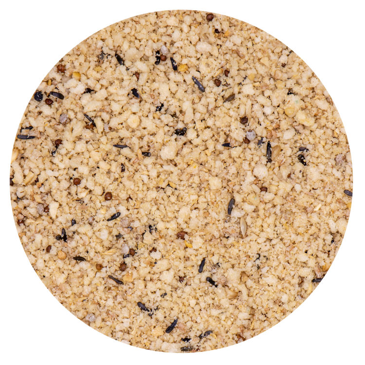 Samenstelling: bakkerijproducten, plantaardige eiwitextracten, suikers, zaden, oliën en vetten, mineralen