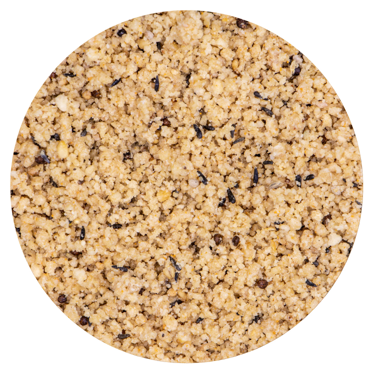 Samenstelling: bakkerijproducten, suikers, plantaardige eiwitextracten, oliën en vetten, zaden, mineralen