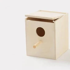 De houten nestkast is eenvoudig te bevestigen aan de wand of tralies van jouw volière. Dankzij het slimme ontwerp met klep kun je het nest gemakkelijk controleren en schoonmaken, zonder de vogels onnodig te storen.