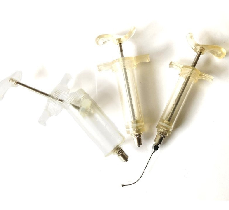 Deze degelijke 10 ml voederspuit is ontworpen voor gebruik met kropnaalden, die extra stevig bevestigd kunnen worden dankzij de schroefbevestiging. Dit voorkomt dat de naalden loskomen, zelfs bij het snel verhogen van de druk, zoals vaak gebeurt met wegwerpspuiten.