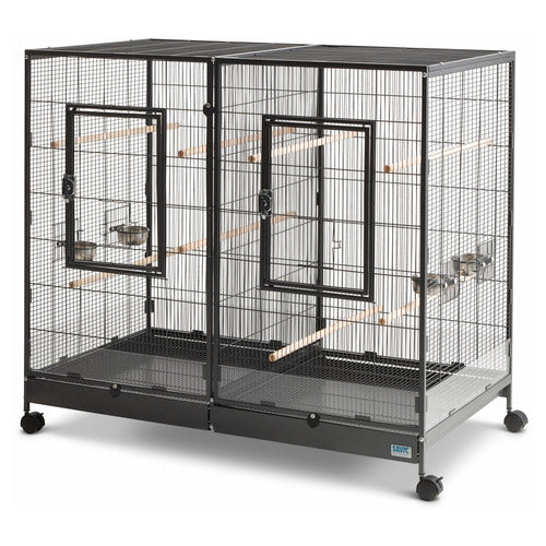 Ruime, multifunctionele vogelkooi voor parkieten en andere kleine vogels. Voorzien van een uitneembaar scheidingsrooster, waardoor de kooi flexibel gebruikt kan worden als twee aparte kooien of één grote leefruimte.