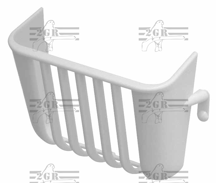 Praktisch kunststof ruifje in de kleur wit, ontworpen om aan de buitenkant van de kooi te bevestigen. Het biedt een eenvoudige en handige manier voor uw vogels om nestmateriaal eruit te halen.