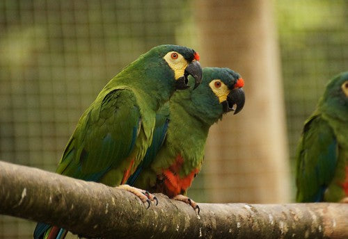 De Ara Maracana is afkomstig uit Zuid-Amerika, en komt met name voor in het centrale oostelijke deel van Brazilië en Paraguay. De Ara Maracana is van kop tot kruin ongeveer 40 cm lang, en wegen ongeveer tussen de 250 en 280 gram. Ze kunnen ongeveer tussen de 20 a 30 jaar oud worden. Deze ara soort lijkt qua uiterlijk vrij veel op de Soldaten Ara, maar is net iets donkerder gekleurd. Deze ara soort heeft een groen met blauwe staart. De onderkant van deze staart is rood gekleurd. Ook de vleugels zijn groen met blauw gekleurd. De borst is groen en heeft een rode uitloop. Het voorhoofd heeft net als de Soldaten Ara een rode opvallende stip. Vandaar dat er ook vaak de vergelijking wordt gemaakt met een Soldaten Ara. De kale huid rondom hun bruine ogen en donkergrijze snavel is wit gekleurd en bevat kleine korte veertjes. Deze soort is vaak te herkennen aan een opvallende rode stip op zijn rug.