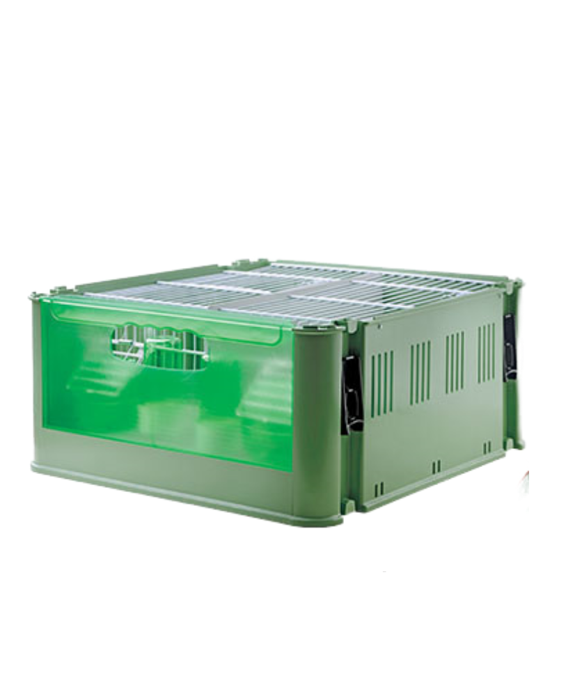 Kunststof transportbox voor vogels, met vaste draad, compleet met drinkbakken, voerbakken en zitstokken